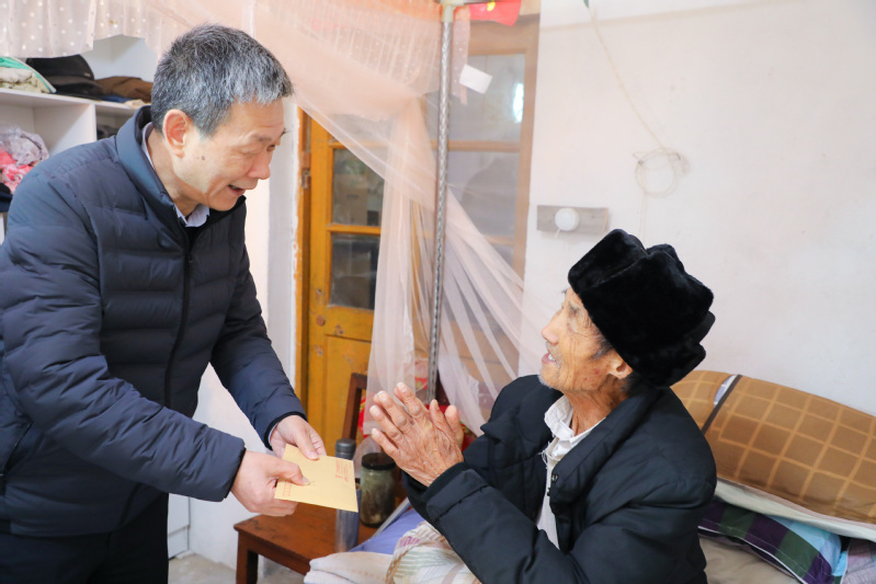 最是情系歲寒時,群眾冷暖記心頭。1月19日,集團公司黨委委員、工會主席楊義林一行到海安農場公司開展春節送溫暖慰問活動,為困難群眾送上集團黨委的關懷以及新春祝福。楊義林一行先后來到退休黨員戴萬同和居民葛連家中,為他們送上大米、食用油等慰問品和慰問金。楊義林仔細詢問了解他們的家庭情況、身體狀況和子女上學情況,鼓勵他們要保持樂觀向上的生活態度,振作精神,把日子過得越來越好,在生活中如果遇到困難,要及時向農場黨委和社區反映。戴萬同和葛連表示,感謝集團和場領導多年來的關懷和幫助,一定會以更堅強、樂觀和感恩的心態面對生活。走訪中,楊義林強調,農場公司黨委要切實把群眾利益放在首位,把困難群眾的安危冷暖常掛心頭,深入了解和幫助解決群眾生產生活中的實際困難,讓每一位困難群眾都能過上一個歡樂祥和的春節。