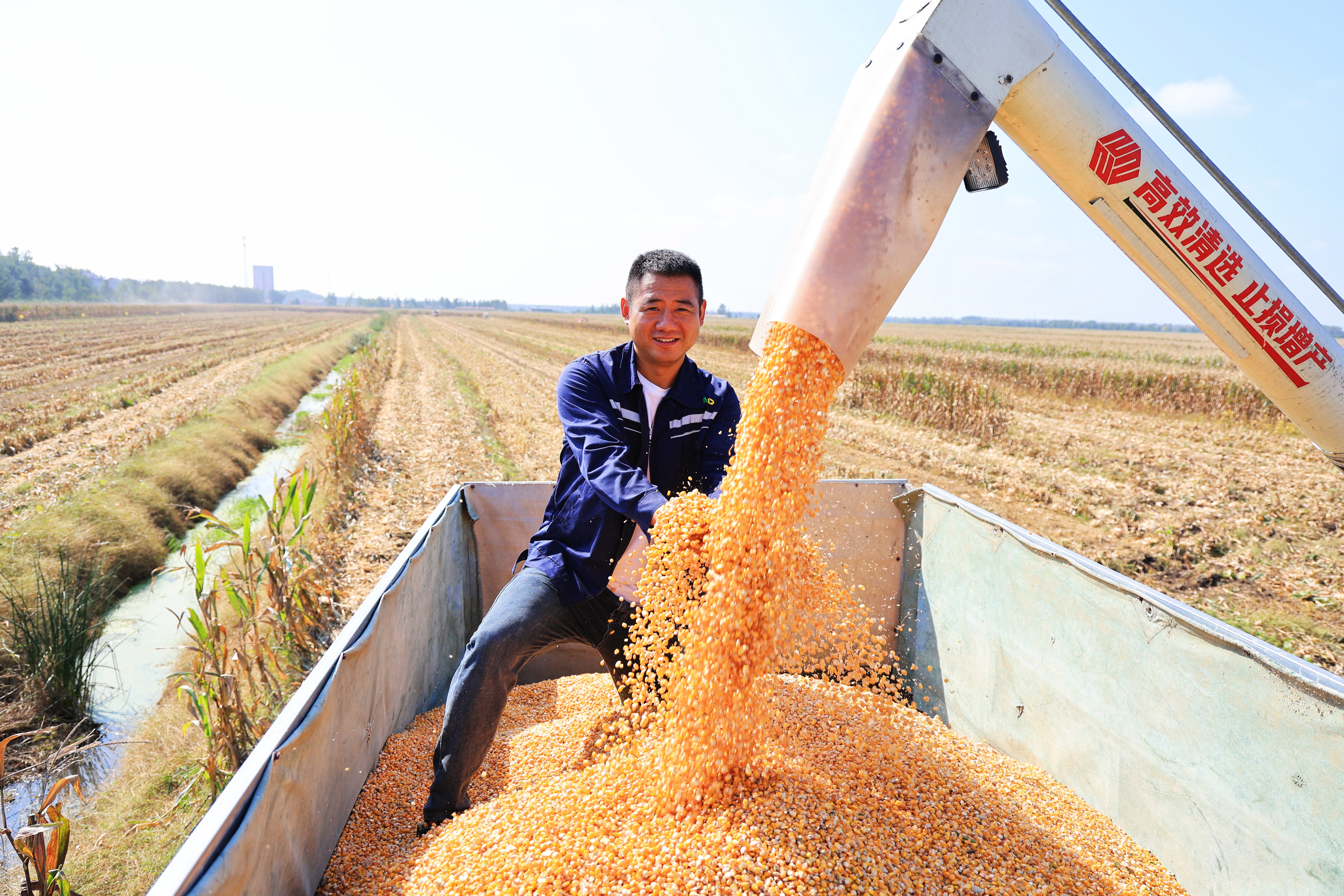 金秋十月,崗埠農場迎來了一年中最繁忙的時節。10月9日,10余臺大型收割機在王溝生產區馬莊隊的玉米大豆田間來回穿梭,金黃的玉米與飽滿的大豆在機械的轟鳴聲中完成收獲,田間地頭呈現出一派熱火朝天的豐收景象。 走進崗埠農場的玉米大豆帶狀復合種植區,只見聯合收割機、運輸車等100余臺農業機械有序作業。在陽光的照耀下,一株株玉米稈被機械巨口吞下,變成了金色的玉米粒傾瀉到運輸車上;大豆莢則通過脫粒裝置分離出圓潤的豆粒,秸稈被粉碎還田,為小麥播種積蓄養分。 據悉,崗埠農場今年共種植1.5萬畝玉米大豆復合田,玉米大豆帶狀復合種植通過高矮作物搭配、邊行優勢利用,實現“玉米不減產、多收一季豆”。“今年是崗埠連續第4年推廣玉米大豆帶狀復合種植模式,既提高了土地利用率,又實現了‘一地雙收’。”在現場,農業中心負責人包加站在田埂上介紹道。為應對近期復雜多變的天氣,崗埠提前調度機械,按照“成熟一塊、收獲一塊”的原則分片作業。“我們9點露水散去開始收割工作,到傍晚時分停止作業,確保糧食及時歸倉。你看,這玉米多么飽滿,顏色非常正。”王溝生產區馬莊隊管理員望著金色的玉米粒,露出了喜悅的笑容。田間,玉米、大豆收割機分片作