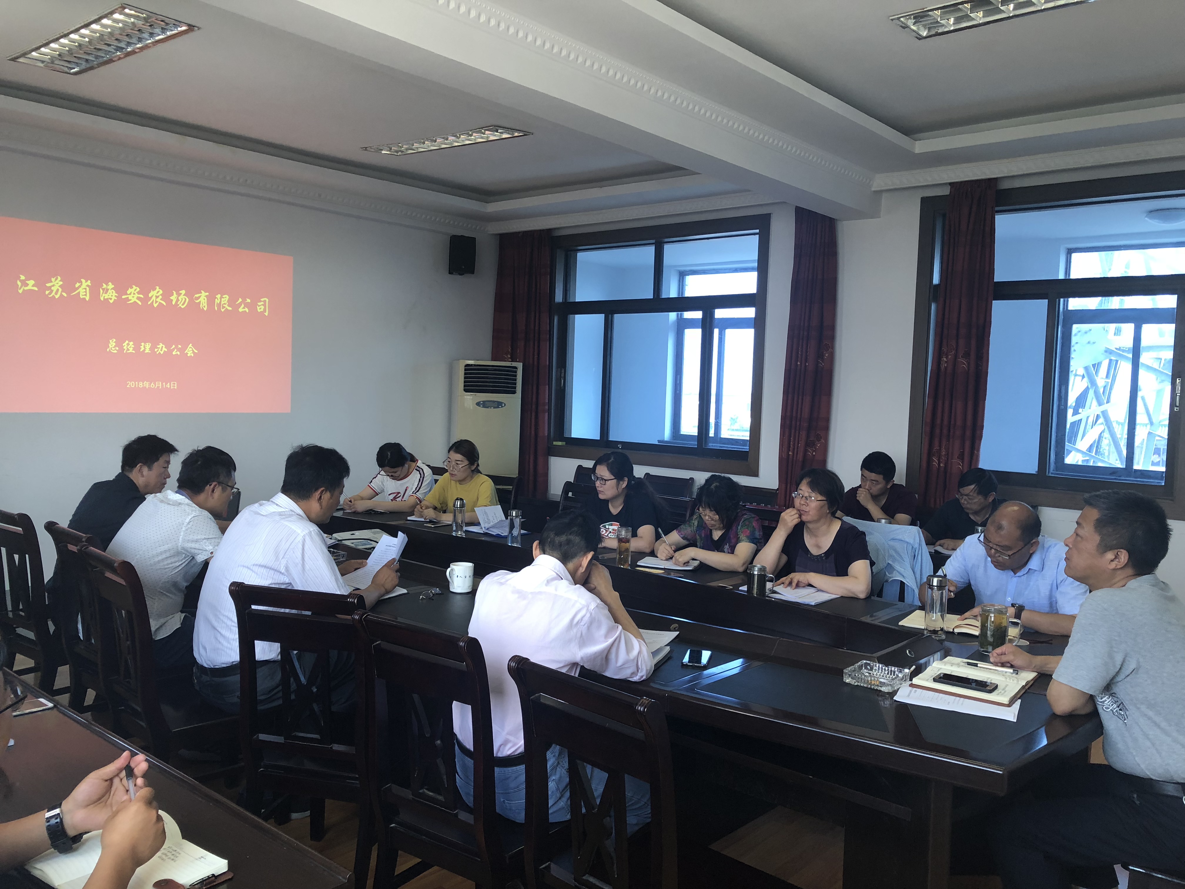6月14日上午,海安農場有限公司召開了總經理辦公會,布置落實目前有關工作。領導班子、農場