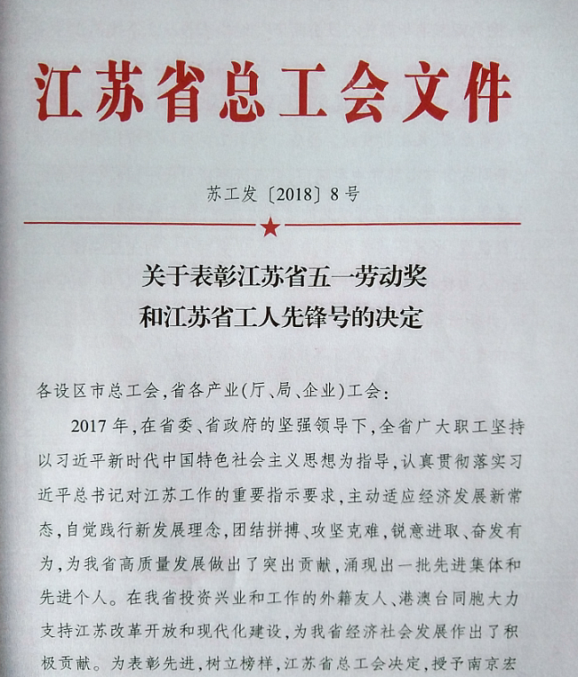 筆者從江蘇省總工會文件(蘇工發[2018]8號