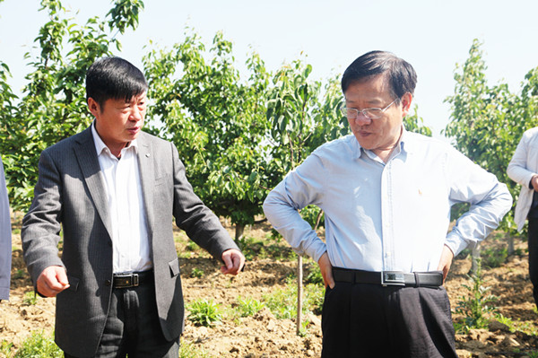 圖為盱眙縣副縣長(右二)王西成在三河梨園參觀調研&nbs