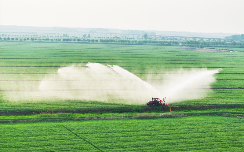 在蘇墾農(nóng)發(fā)白馬湖分公司小麥田間,農(nóng)機手正熟練操作著無人機和地面噴灌機,為冬小麥進行抗旱施肥和病蟲害防治作業(yè)。他們以科技賦能農(nóng)業(yè),以辛勤汗水和智慧結(jié)晶守護著近5萬畝冬小麥茁壯成長。