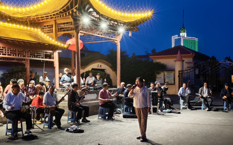 每日清晨,走進東辛公園,景色優美、河水蕩漾、綠樹成蔭、百鳥爭鳴,荷塘內夏日荷花婀娜多姿、競相綻放,藍天白云和隨風搖曳的柳枝倒映在水面上,宛若一幅動態的風景畫,給東辛公園增添了幾分獨有的美麗。穿過蜿蜒曲折的步道,在東辛公園西北角,這里參天大樹四面環繞,空氣清新沁人心脾,是居民群眾免費的室外“健身房”。只見6名太極愛好者身著粉色太極拳服,音箱內播放著舒緩的音樂,他們動作整齊劃一,身形靈活揮灑自如,將太極拳含蓄內斂、連綿不斷、急緩相間、行云流水的風格展現得淋漓盡致,吸引了許多公園晨練者駐足觀看。其中一位愛好者楊老師說:“平日里大家工作都特別忙,現在盛夏時節天亮的早,公園內風景優美,我們太極拳愛好者每天6點半左右就開始集合鍛煉,堅持打太極對男女老少身體都特別有益,尤其對肩頸舒緩非常有幫助,越來越多的人加入到太極拳隊伍中來。”在練習隊伍中,出現了不少年輕人的身影,充分展示了農場居民健康積極、樂觀向上的精神風貌。傍晚時分,結束了一天忙碌的工作和學習,東辛文化廣場燈光籃球場上人頭攢動,這里有暑期放假的學生,也有居民籃球愛好者,還有單位職工相約三五好友一道來到這里揮灑汗水,切磋球技。傳球、控球、擋拆、