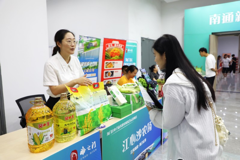 7月13日,在南通·中關村信息谷新電商發展會議展銷會現場。江心沙農場攜鮮食玉米、巨峰葡萄、“低GI”功能大米等農特產品參展,與逛展者和采購商簽訂大小訂單30余個,并與京東等電商平臺就直播帶貨、線上旗艦店等業務達成初步合作意向。