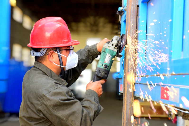 為更好地做好農機服務工作,保障糧食安全,6月6日上午,淮海分公司農機總站的工人,正在為運糧車廂加固鐵件進行打磨作業。