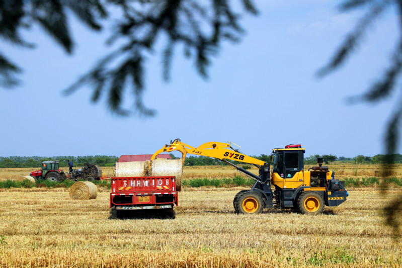 5月29日下午,在蘇墾農發淮海分公司第一生產區三大隊,隨著收草、打捆、叉車等機械的共同發力,散落在田間的大麥秸稈被叉運上車。此舉不僅提升了農田作業的質量,夯實了糧食增產的基礎,同時也減少了農業的面源污染,促進了綠色生態環境的養成。