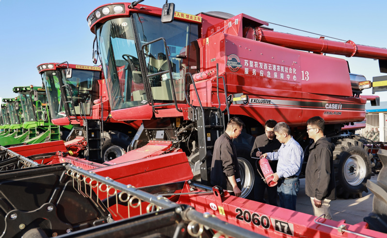 在夏日的微風輕拂下,云臺農場的1.69萬畝麥田迎來了豐收的季節。6月3日,云臺農場的小麥正式開鐮收割,農場工作人員們搶抓天氣晴好的有利時機,加緊搶收,確保夏糧顆粒歸倉。在云臺農場的麥田中,一臺臺收割機如駿馬般馳騁,它們“吞”進沉甸甸的麥穗,“吐”出金燦燦的麥粒,運糧車滿載新收獲的小麥,奔馳在鄉間小路,職工們的臉上洋溢著喜悅的笑容,田間里呈現出一派豐收的景象。“請各大隊負責人在收割前完成對本單位所用農機具安全自查及兩協議一告知簽訂工作”“請各大隊領取滅火器,收割時放在地頭”……為保障“三夏”期間農業生產有序進行,確保夏糧顆粒歸倉,夏種不誤農時,云臺農場蘇墾農發云臺分公司提前安排部署,把夏收安全工作列為頭等大事,多措并舉做好“三夏”安全生產,層層把關落實,為奪取全年糧食安全奠定堅實基礎。
