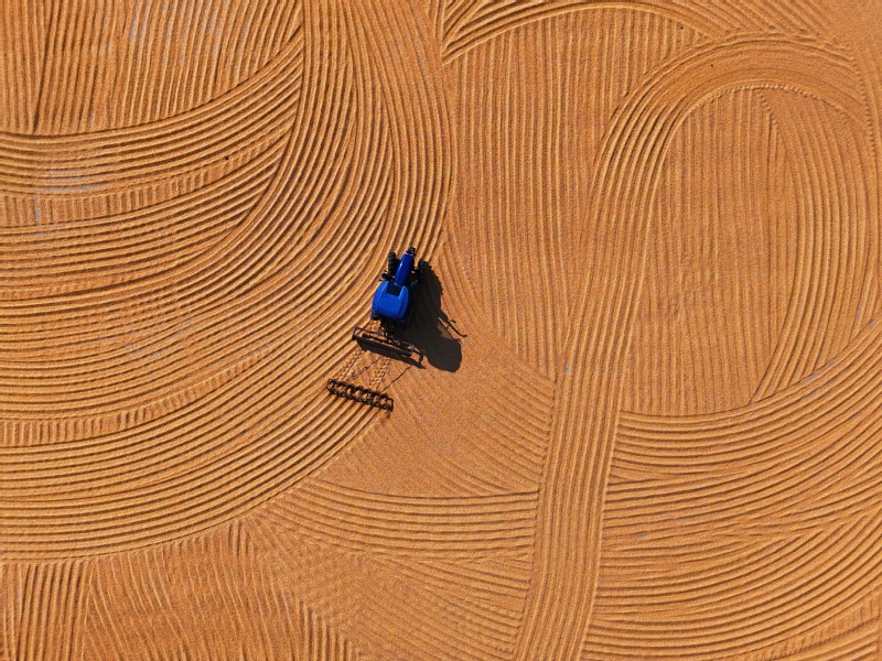 隨著天氣轉好,崗埠農(nóng)場加緊推進秋糧收獲、晾曬等工作。圖為10月22日,崗埠農(nóng)場職工駕駛翻糧機械,利用晴好天氣晾曬玉米。在藍天白云的映照下,翻糧機在金色的玉米上劃出一道道優(yōu)美的弧線,刻畫出秋日的美好“豐”景。
