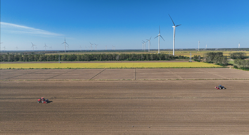 江蘇農(nóng)墾土地資源開發(fā)有限公司積極開展土地平整作業(yè)。多臺大型農(nóng)機在開闊的田塊上協(xié)同高效作業(yè),經(jīng)過精準翻耕、壓實與找平,原本零散破碎的地塊逐步重塑為連片規(guī)整的高標準農(nóng)田。
