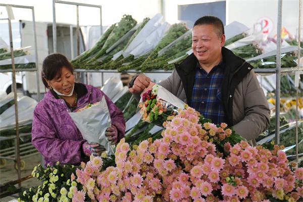 走進富民農業(yè)科技園14號大棚,雛菊鮮切花成熟上市,工人們正在溫室大棚里挑選裁切雛菊花。在包裝車間內,工人們正在整理數以萬計的雛菊,去掉多余枝葉,整理包裝成一束束精美的花束,不遠處的三大排貨架上,全部都是五顏六色的雛菊。“我們園區(qū)種植了5個大棚的雛菊,約二三十個品種共15萬枝,現(xiàn)在相繼進入采摘期。現(xiàn)在園區(qū)一邊采摘雛菊,一邊忙著整理包裝,準備供應山東客商。”園區(qū)副主任魏建東介紹說,剛上市的雛菊每天采摘量在2000枝以上,往后會越來越多,不斷滿足市場需求。隨著社會經濟的發(fā)展和人們生活水平的提高,鮮花逐漸成為更多人裝扮生活的必需品,消費理念的改善促使鮮切花品種結構日趨豐富。其中,雛菊以其色彩繁多、花型多樣、瓶插期長、耐運輸、清新動人的花姿,受到廣大消費者喜愛追捧。崗埠農場公司緊盯市場需求,大力發(fā)展多元鮮切花種植,引進新品種、新技術,積極探索發(fā)展新路徑新模式,走特色鮮花發(fā)展之路。“當前,我們園區(qū)大力發(fā)展鮮切花產業(yè),從種植、包裝、銷售逐步升級,進一步轉變經營模式,提高產業(yè)效能。在提高集體經濟效益的同時,發(fā)揮示范帶頭作用,為花農的種植經營創(chuàng)造更有利條件,在增加場域就業(yè)上做文章,爭取實現(xiàn)社會效益的最大