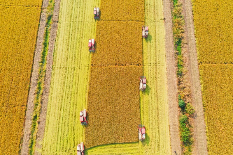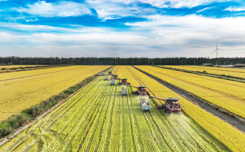 豐收時節(jié)碩果飄香,黃澄澄的稻谷鋪滿大地,紅彤彤的高粱俏立枝頭,穗粒飽滿,猶如紅火的云霞……豐收碩果驚艷了黃海大地,悄然繪就多彩豐收圖。10月24日,江蘇農(nóng)墾黃海農(nóng)場11萬畝水稻迎來豐收。現(xiàn)場收割機(jī)的隆隆轟鳴,糧食運輸車輛來回穿梭,確保水稻應(yīng)收盡收、機(jī)收減損、顆粒歸倉。據(jù)了解,黃海水稻收割機(jī)械近200臺在田作業(yè),收割機(jī)械化率達(dá)100%。黃海大面積水稻收獲峰期將在本月末前后,預(yù)計經(jīng)一周努力,水稻即可收獲告罄。黃海將以“搶”字為先,抓住有利天氣,及時進(jìn)行晾曬和儲存,保障糧食安全。進(jìn)一步優(yōu)化生產(chǎn)布局,推動秋種生產(chǎn)順利進(jìn)行,推進(jìn)農(nóng)業(yè)生產(chǎn)結(jié)構(gòu)優(yōu)化和調(diào)整,夯實明年夏糧豐產(chǎn)豐收基礎(chǔ)。火紅,也是豐收的顏色。在外拓基地,8400畝酒用高粱進(jìn)入全面收割階段,一輛輛高粱收割一體機(jī)轟鳴著來回穿梭,一株株穗大粒密的高粱被收割機(jī)納入后吐出,粉碎后的秸稈撒在地里,留下粒粒飽滿的果實,形成了一幅美麗的豐收畫卷。自江蘇農(nóng)墾(蘇墾農(nóng)發(fā))與蘇酒集團(tuán)(洋河股份)共同推進(jìn)綠色原糧基地建設(shè)戰(zhàn)略合作協(xié)議簽訂以來,宿遷分公司充分發(fā)揮區(qū)位優(yōu)勢,奏響農(nóng)墾“示范區(qū)、國家隊”主旋律,開始逐步推進(jìn)高粱規(guī)模化種植,達(dá)到穩(wěn)產(chǎn)增收的同時能夠進(jìn)一步調(diào)節(jié)