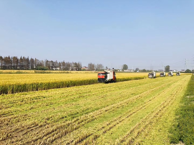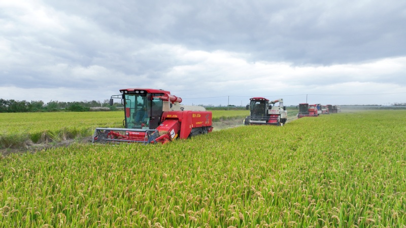2025年10月10日,蘇墾農(nóng)發(fā)崗埠分公司正在搶收水稻。秋收時節(jié),天氣復(fù)雜多變,給秋收工作帶來一定困難,崗埠分公司按照“成熟一塊、收獲一塊”的原則,組織200多臺收運(yùn)機(jī)械,集中力量加緊進(jìn)行機(jī)械搶收作業(yè),確保成熟玉米、水稻等秋糧及時歸倉。